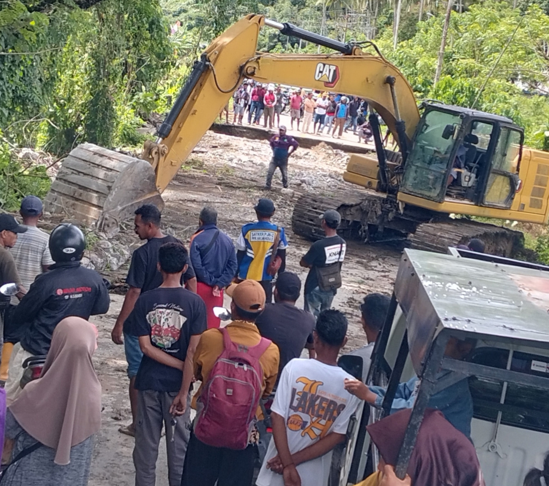 ” Pembuatan jembatan darurat kami pakai batang kelapa. Diupayakan hari ini bisa selesai. Kami juga sudah melaporkan ke kantor Balai sekitar jam 22.30 WIT malam,” ujarnya Selasa (19/08/2025).