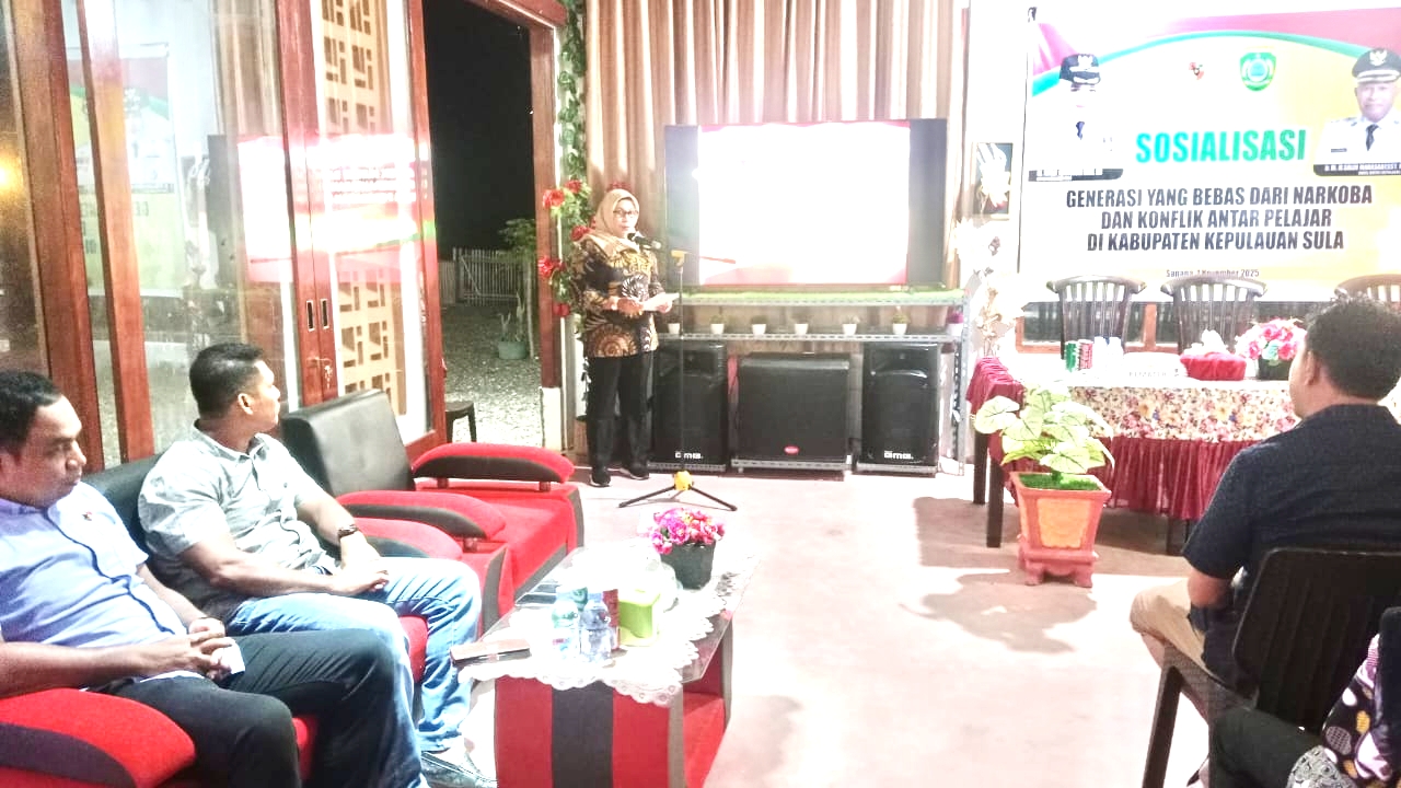 Kepala Badan Kesbangpol Kepulauan Sula, Hj. Salma Gailea, SE. M.Si dalam sambutan sebelumnya, mengajak kepada hadirin sekalian untuk memanjatkan puji dan kepada Allah SWT. Tuhan yang maha esa atas rahmat dan hidayah-nya terutama kesehatan dan kesempatan kepada peserta yang mengikuti acara sosialisasi generasi yang bebas dari narkoba serta konflik antar pelajar di Kepulauan Sula yang di adakan Kesbangpol.