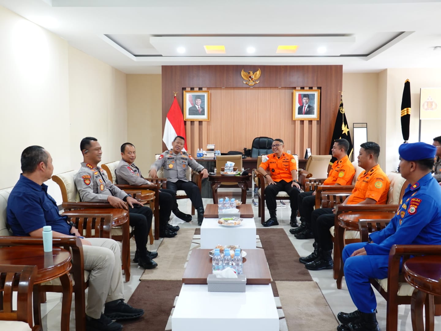 Dalam pertemuan itu, Kapolda didampingi Dir Reskrimsus Polda Maluku Utara, Dir Samapta Polda Malut, Dansat Brimob Polda Malut, Mewakili Direktur Polairud. Sementara Kabasarnas didampingi Kasi Sumber Daya dan Kepala Urusan Umum Kantor Pencarian dan Pertolongan Ternate.